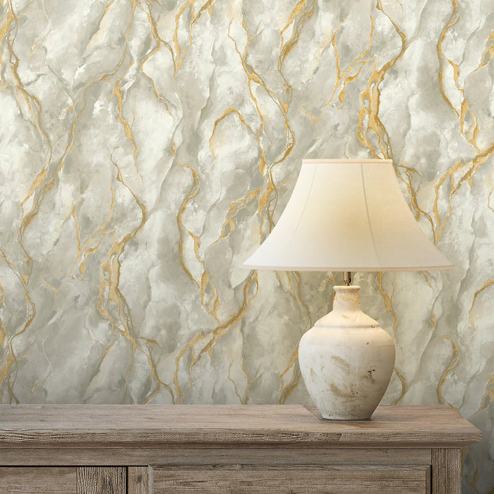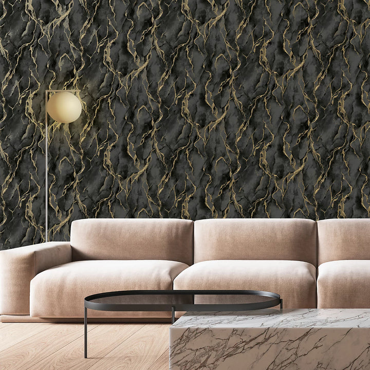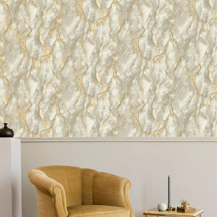 Perfect for feature walls in living rooms, bedrooms, or hallways, Pandora Marble balances luxury with durability. Its heavyweight paper, offset pattern repeat, and metallic highlights make it a statement piece—but one that’s also practical for real spaces. Use it to elevate contemporary décor, pair with luxe metals, moody tones, or keep furnishings minimal so the marble effect takes centre stage.