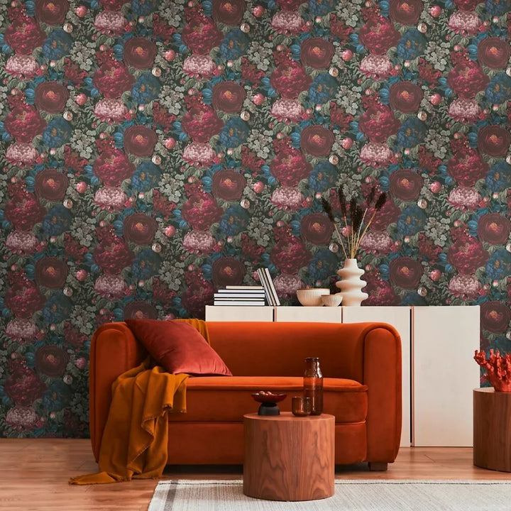 Step into a bloom-filled dream with the Michalsky Red Roses Wallpaper. This striking design captures large-scale red roses set against contrasting tones of black, petrol, blue and cream, combining dramatic floral impact with vintage richness. Each rose is layered with texture and depth, so the petals seem to almost float off the wall, turning any room into a gallery of romance and elegance.