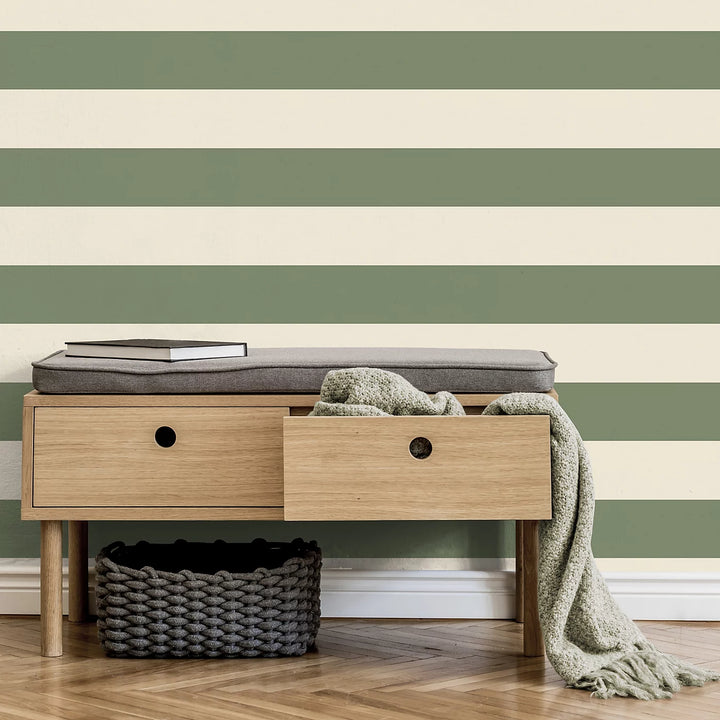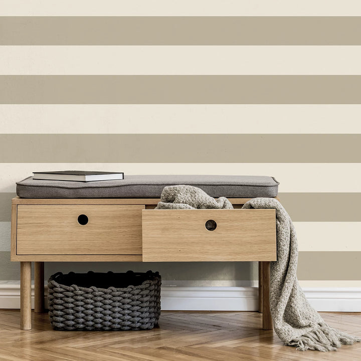 The wallpaper is made from high-quality paper (unpasted), making it compatible with standard “paste the paper” installation. Its washable and peelable finish helps with upkeep, and the neutral stripe styling lets it mesh well with more decorative wallpapers or simpler accents.