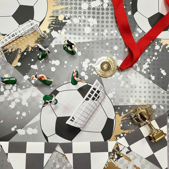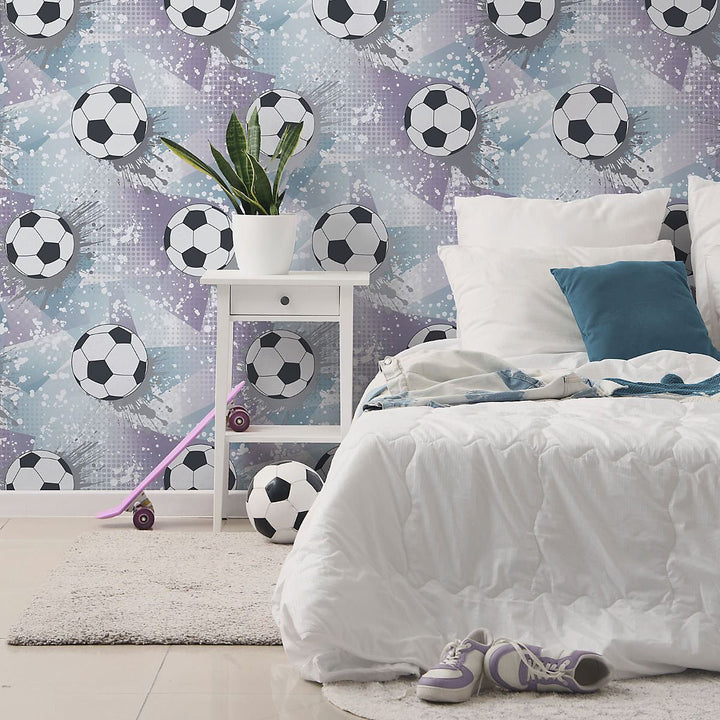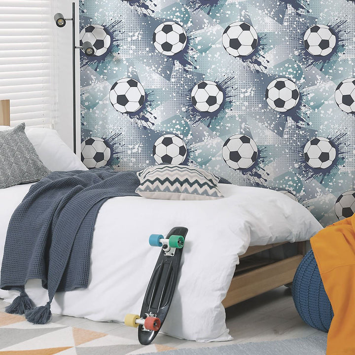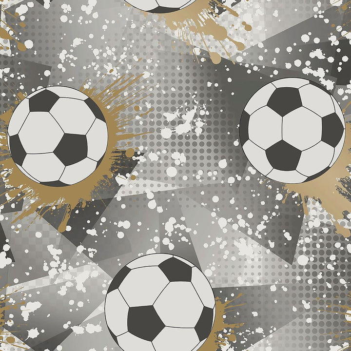Bring the excitement of the pitch into any room with the Football Frenzy range. This energetic design features classic footballs exploding in metallic splashes over dynamic geometric and dot-patterned backgrounds, enhanced with paint splatter details. Whether you choose the cool tones, bold accents, or metallic shines, each variant captures movement and youthful energy. Perfect for feature walls, kids’ bedrooms, playrooms, or sporty themed spaces — Football Frenzy turns a wall into a statement.