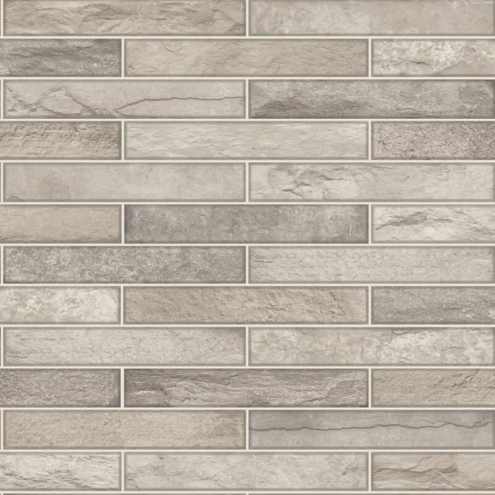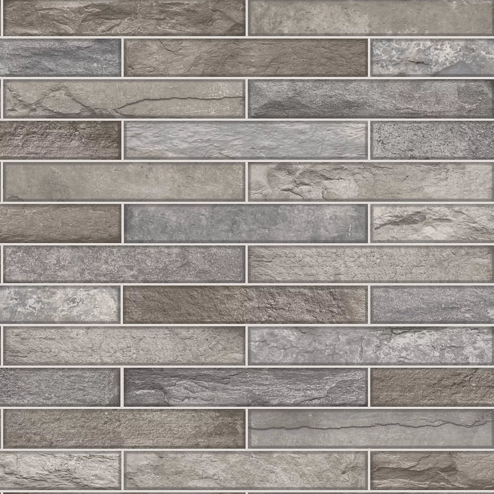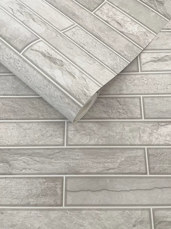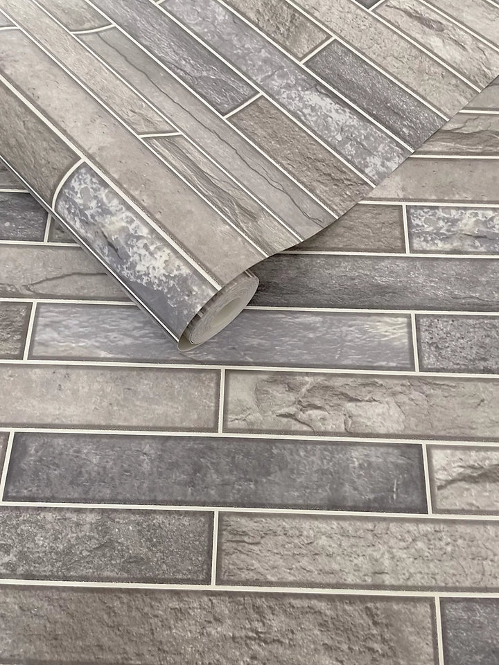 Bring the rugged beauty of natural stone into your interiors without the fuss or cost of real tile—Talara Stone Tile Wallpaper delivers a compelling textured stone effect in painterly tones. Whether in dove grey, warm beige, or bold blue-mocha, each variant evokes layered stone walls, complete with subtle metallic highlights that catch light and shift gently.