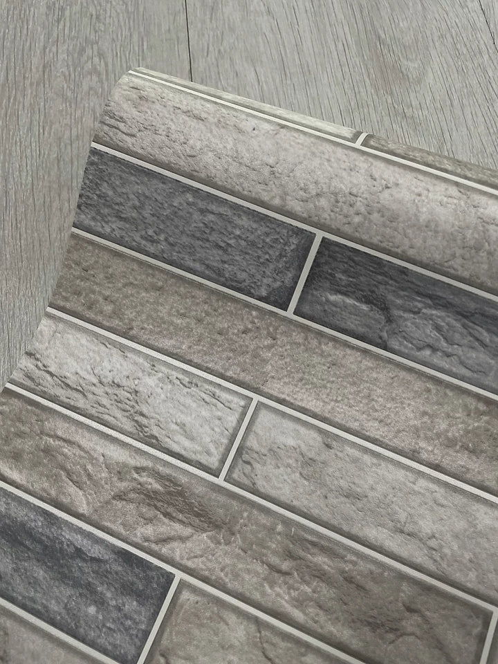 Authentic Stone Tile Look — A faux stone tile design that replicates stacked stone blocks, natural texture and tonal variation with visual irregularities to mimic real stone.