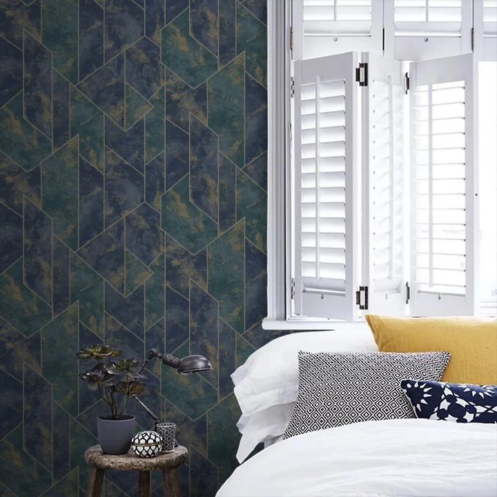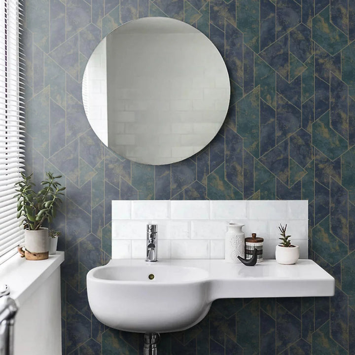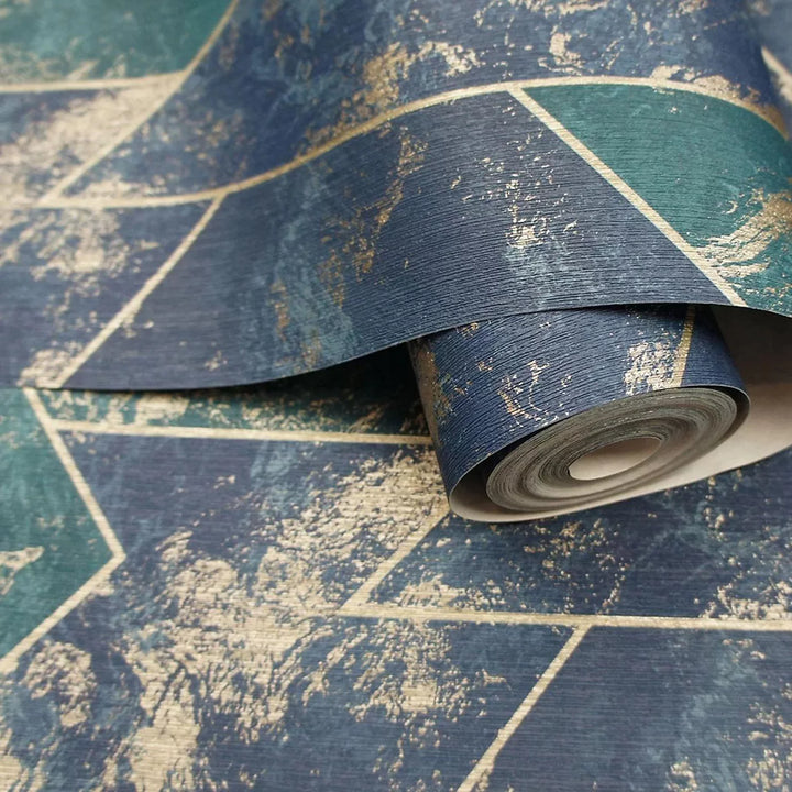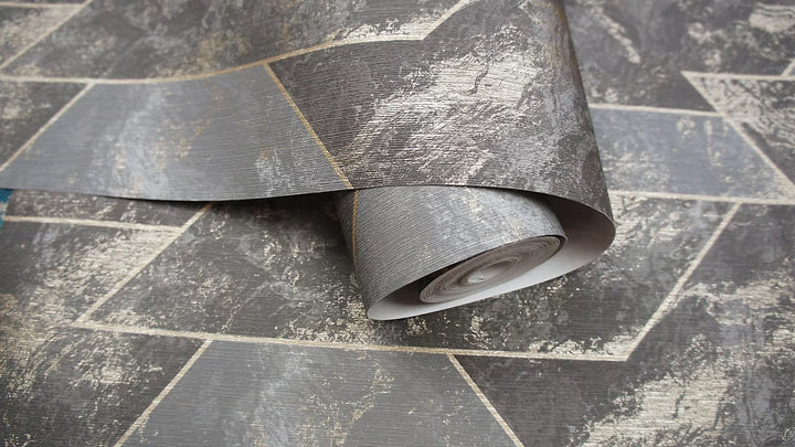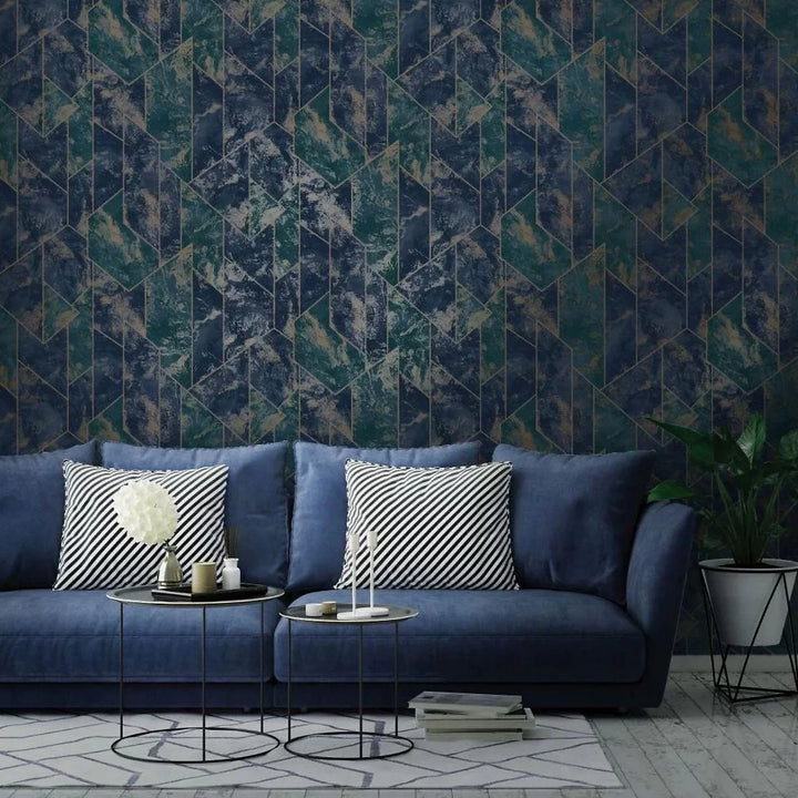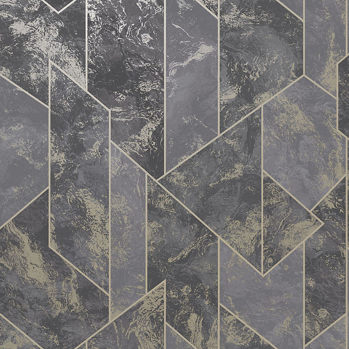 Transform your interiors with the Holden Decor Zarci Geometric Wallpaper, a contemporary design that brings together the natural elegance of marble textures and the precision of bold geometric structures. Metallic highlights run through the design, catching the light beautifully to add movement and depth to any space. Available in sophisticated colourways such as deep navy and rich charcoal, it delivers a dramatic statement while maintaining a refined, modern feel.