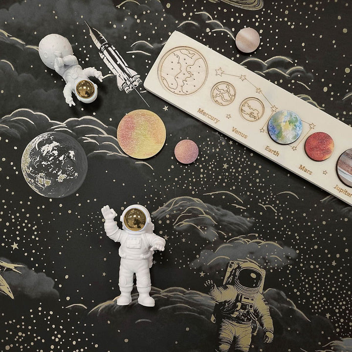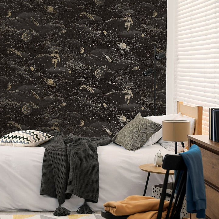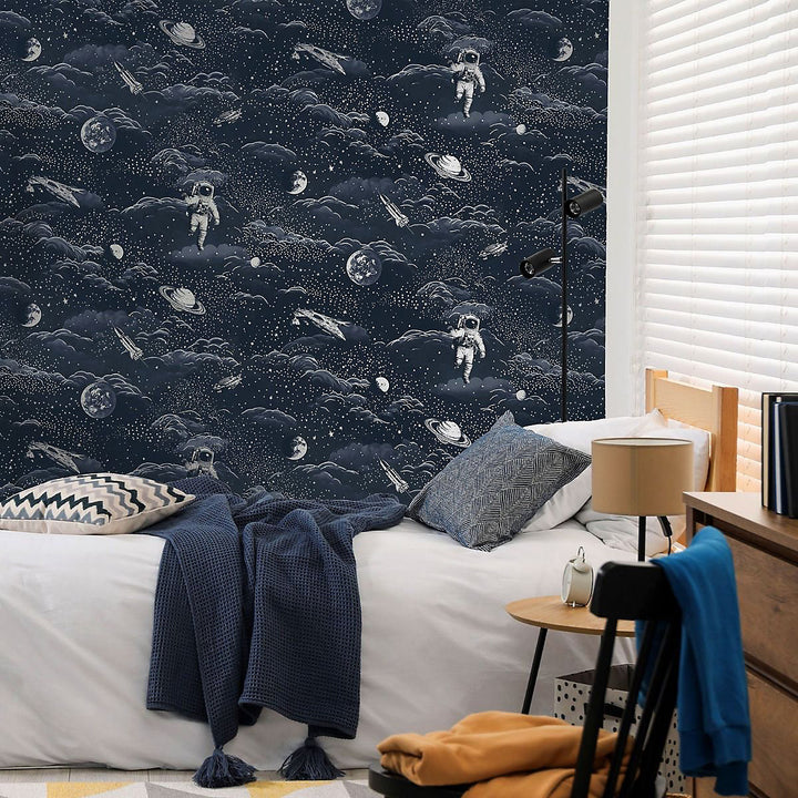 Galactic Narrative with Artistic Flair — The design tells a story: rockets launch, planets hover, and astronauts drift across the backdrop, evoking wonder while adding character to your room.