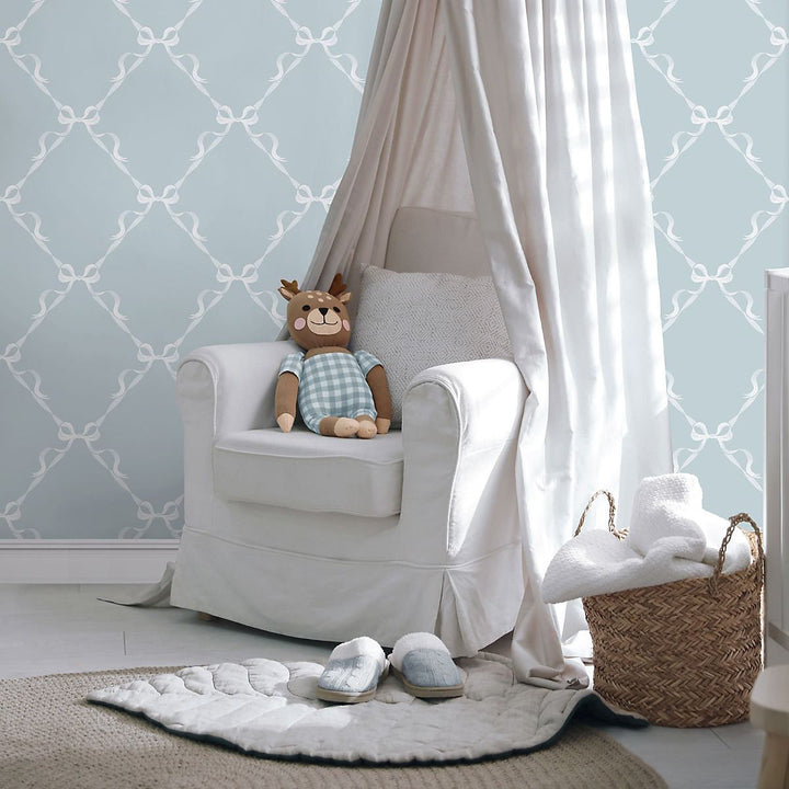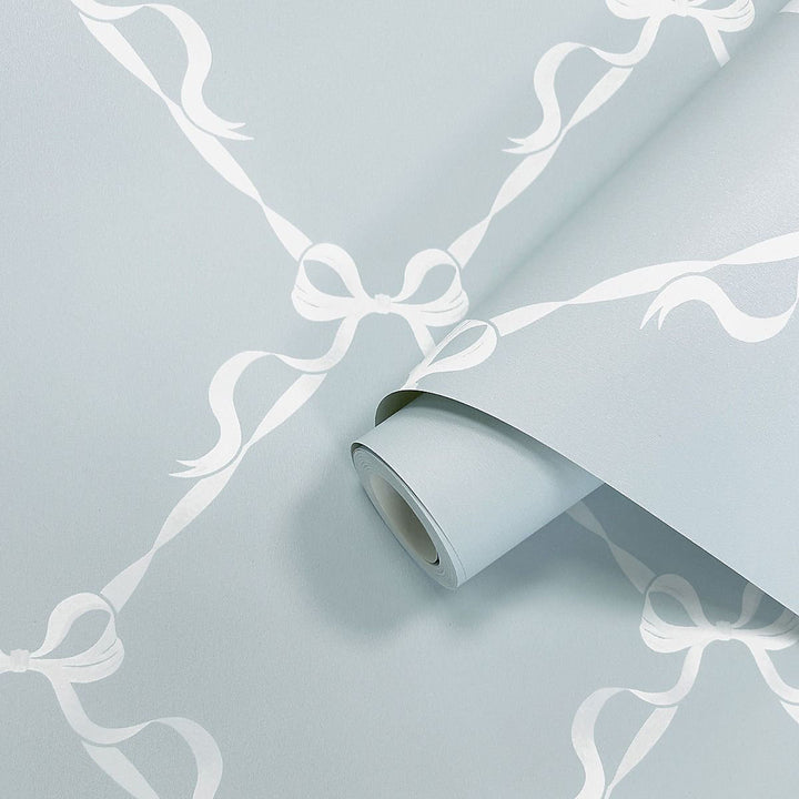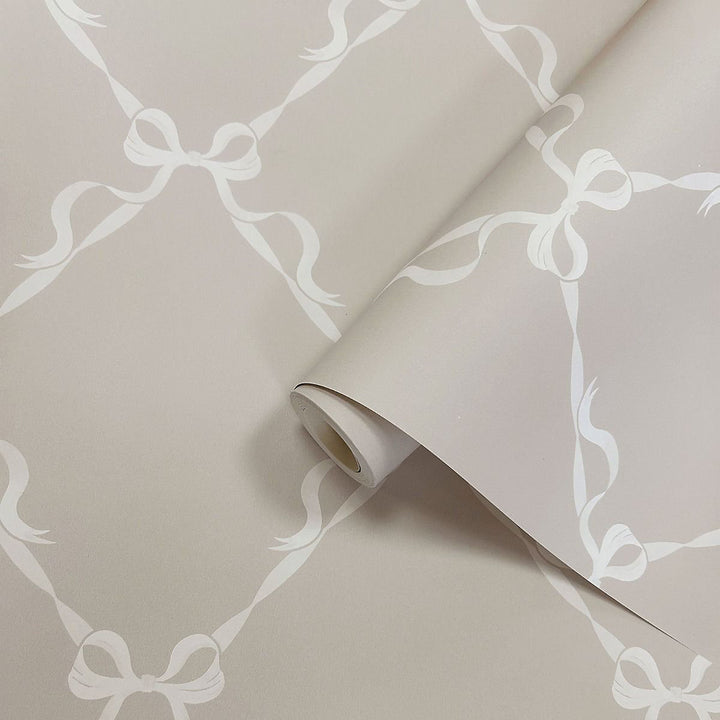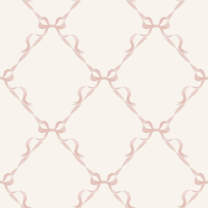 Ribbon Trellis with Bow Motif – A continuous network of ribbon lines and soft white bows forms an elegant trellis, lending subtle movement and charm without being overly busy.