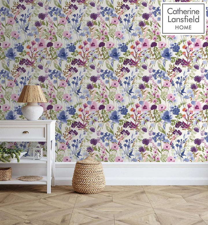 Hand-Painted Floral Motif: Features an array of wildflowers in soft pinks, purples, and blues, bringing a natural and artistic touch to your walls.