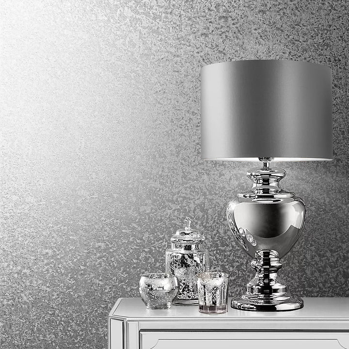 Designed to mimic the rich depth of velvet via a crushed-velvet emboss over metallic foil, this wallpaper brings warmth and sophistication with every glance. Its reflective silver finish catches light beautifully, creating shifting highlights that dance across the wall—perfect for making feature walls in living rooms, bedrooms, or any space where elegance is desired.