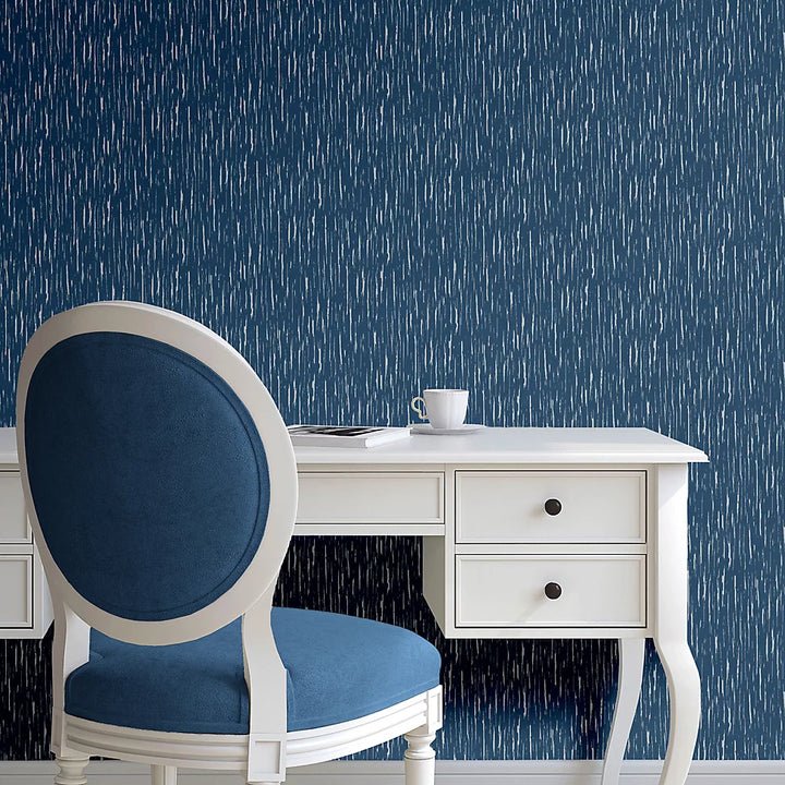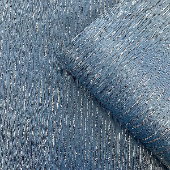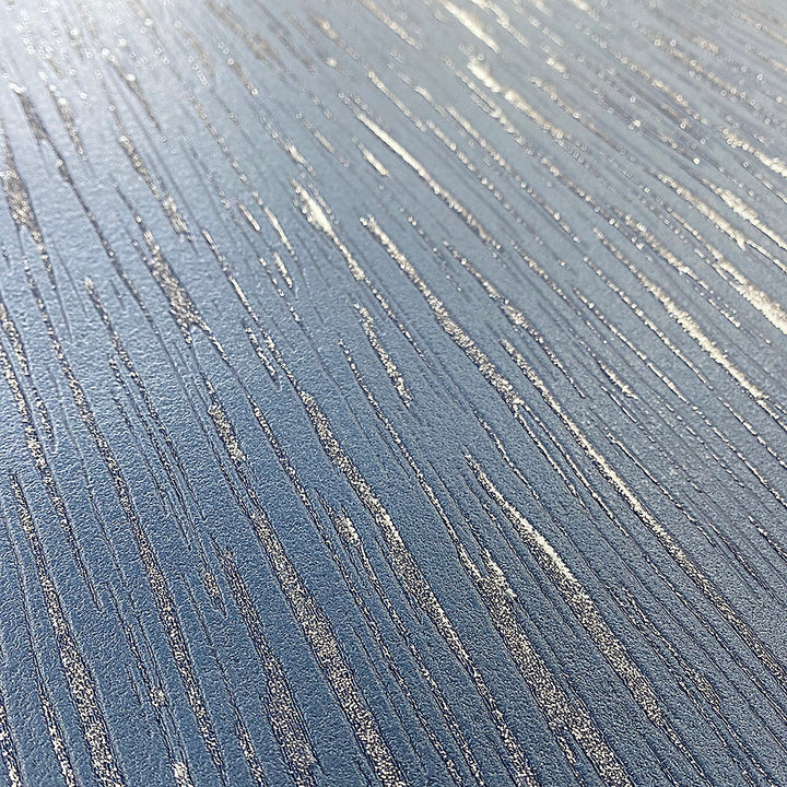 Elevate your space with Muriva Nala Blue-Silver Texture Wallpaper 171103, where tranquil tones and metallic glimmer meet industrial chic. Fading streaks of blue and silver cascade vertically across a textured background, evoking the soothing rhythm of rainfall or the softened sheen of brushed steel. Subtle glitter highlights catch ambient light, adding just the right touch of sparkle without overwhelming your décor.