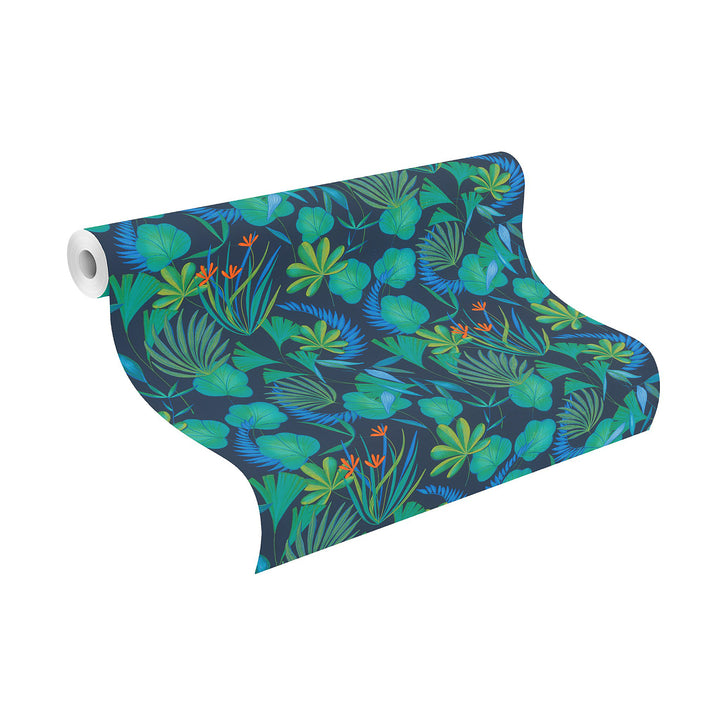 Infuse your walls with lush, natural elegance with Rasch Botanical Leaves Navy. Rich navy tones combine with cascading green foliage to create a timeless botanical look—bold yet serene. Set on a textured vinyl background, this wallpaper offers both visual depth and durability. Its “Paste-the-Wall” application makes it easier to install, while “washable” and “good light fastness” ratings ensure long-lasting beauty.
