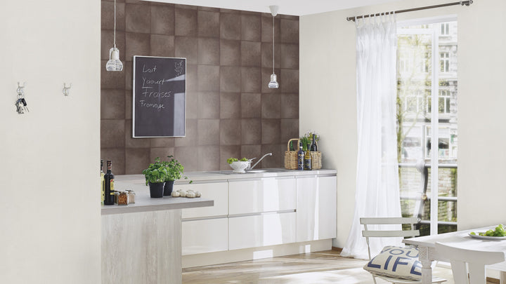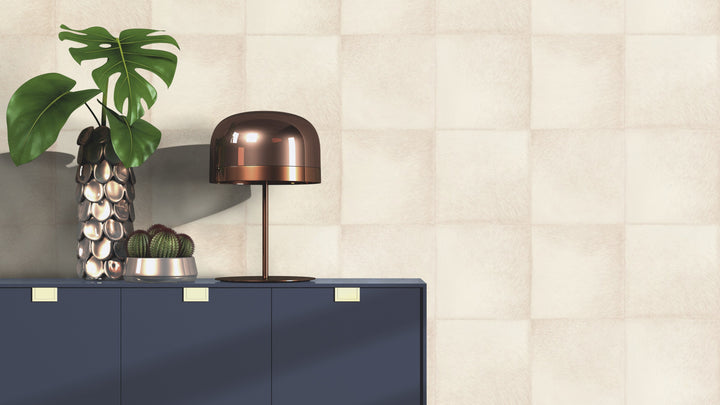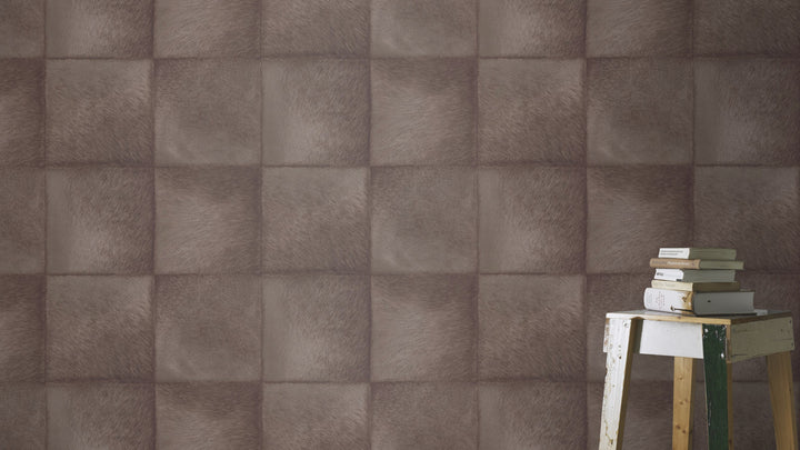 Give your walls the warmth and texture of fur without the upkeep. This wallpaper captures the luxurious look of leather panels or fur tiles with embossed structure and detailed stitch effects. With tones that range from rich grey-blue to neutral grey-silver, these wallpapers make a statement whether used on a feature wall or throughout a space.