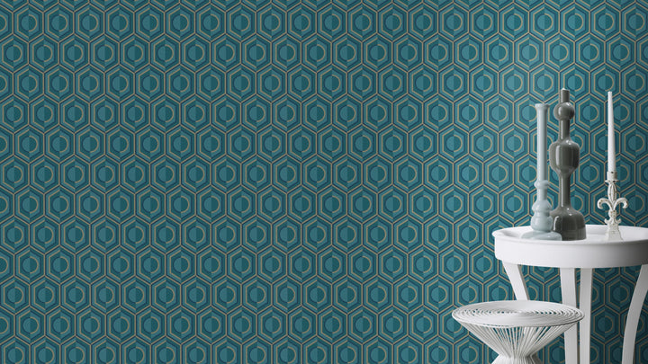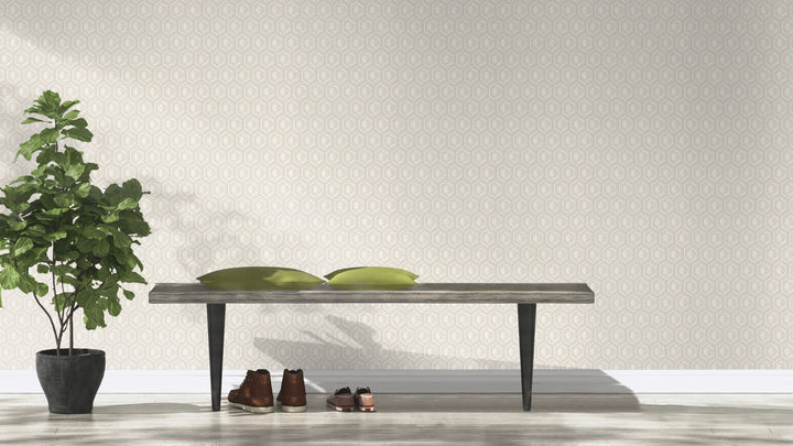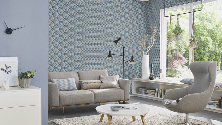The Rasch Sophia Geometry non-woven wallpaper collection combines bold geometric styling with a refined modern touch. Featuring interlocking circles and hexagonal forms highlighted with subtle metallic accents, this design creates depth and a sense of movement on the wall. The non-woven backing ensures strength and stability, while the paste-the-wall installation method makes hanging quicker and less messy than traditional wallpapers.