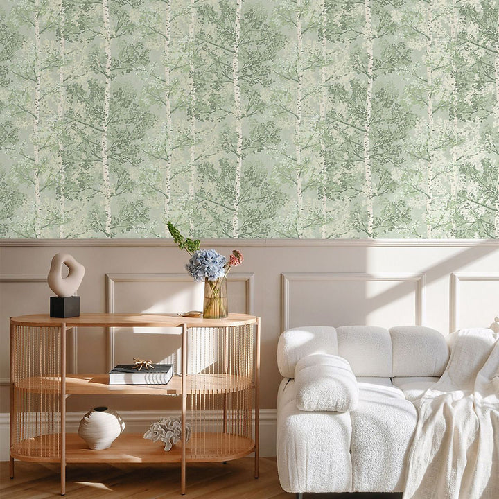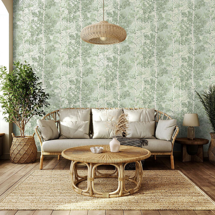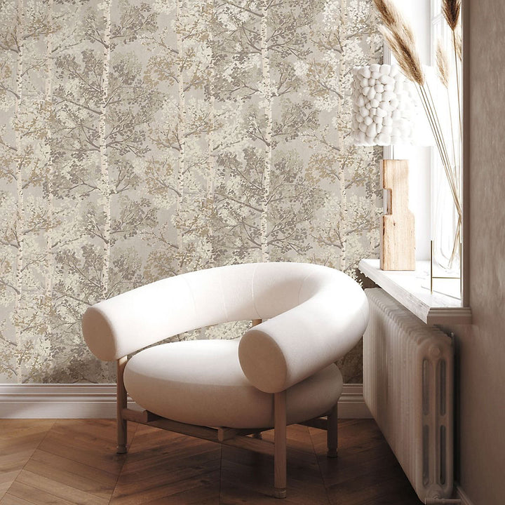 Elevate your interiors with the serenity and organic beauty of Silverwood by Rasch. This wallpaper features graceful birch tree forests, richly detailed with metallic accents that catch the light and add texture without overwhelming. Its natural woodland imagery evokes calm, bringing the outdoors in, making it perfect for creating tranquil feature walls in living rooms, bedrooms, or dining areas.