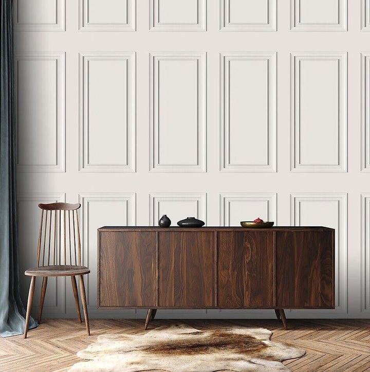 Add a touch of architectural elegance to your interiors with the Rasch Wood Panel Off-White Wallpaper. Featuring a realistic wood panel / panelling effect in an off-white tone, this wallpaper simulates classic wooden panel boards with depth and shading to bring a rich texture to your walls. The neutral off-white finish makes it highly versatile—working beautifully in modern, minimalist, rustic, or traditional settings. Perfect as a feature wall, in hallways, stairwells, or used throughout a room to evoke a clean, refined backdrop that complements both colour and material finishes like wood, metals, and fabrics.