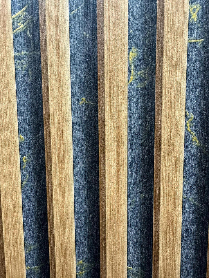 Simpler and more cost-effective than installing actual slatted wood or metal panels, offering a premium look at wallpaper ease.
